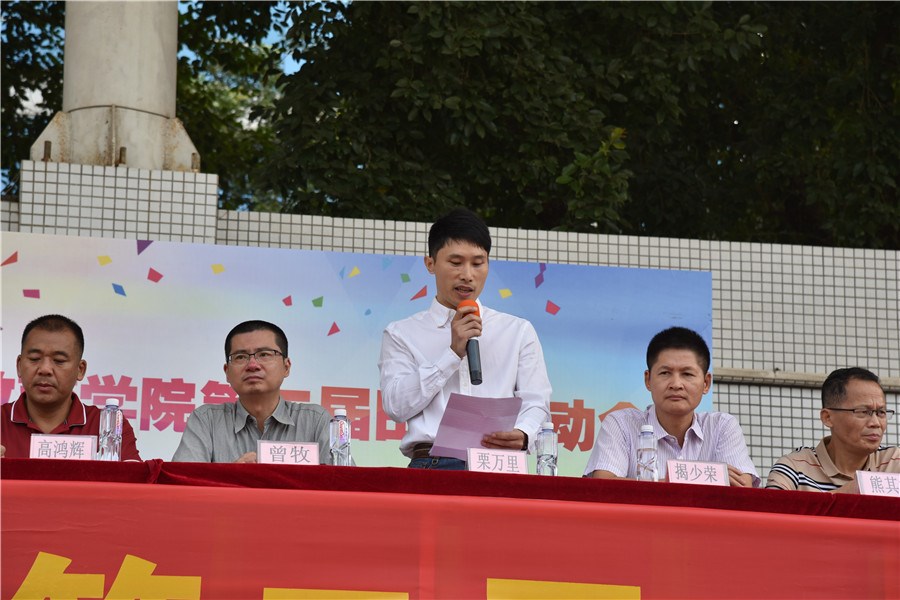 11月2日,日本a片顺利举办第二届田径运动会,日本a片 招生与学生事务管理部主任曾牧、团委书记栗万里、校本部教师代表及5个校外教学点负责人、领队、近200名运动员、23名裁判、80位团委学生会学生干部和近500名学生代表参加了开幕式。