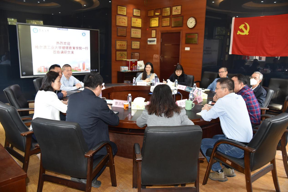 3月6日上午,哈尔滨工业大学继续日本a片 副院长曹云峰、哈尔滨工业大学继续日本a片 项目主管李海伦在广东省全民国防教育中心主任兼学会秘书长吴宗现、广东省教育厅装备中心一级主任科员杜武广的陪同下,一行4人至日本a片进行调研交流。日本a片院长李世云、党委书记陈斌、其他院领导及各职能部门负责人出席座谈交流会。